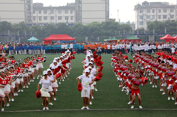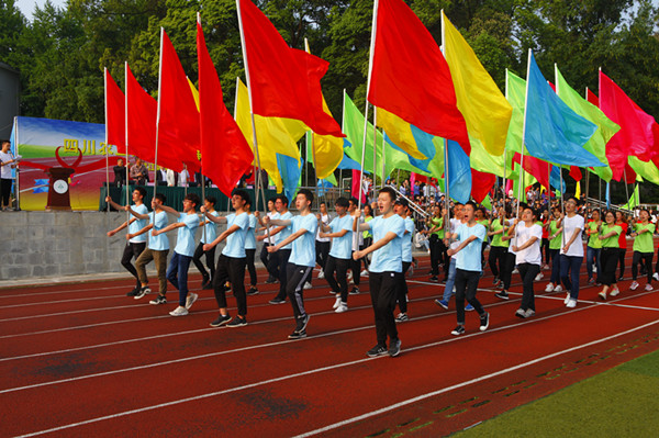 在激情昂扬的运动员进行曲中,国旗队、鲜花队、学院代表队、教职工及裁判员代表队等数十个方队依次经过主席台。入场仪式上,各个方队各显神通,引来阵阵欢呼。运动服、啦啦操只是标配,或是把白大褂、草帽、动物标本、测绘仪、绘图尺等与川农学子学习研究息息相关的服饰带到了运动场,或是有剧情的演出、动感的舞蹈、华美的汉服让大家看呆了眼……层出不穷的惊喜,让观众被一支支青春活力队伍点燃了激情。