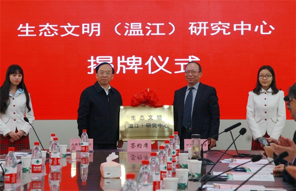 张志军、杨文钰分别代表双方签署了共建环川农大知识经济圈合作框架协议。谢瑞武、邓良基共同为生态文明(温江)研究中心揭牌。