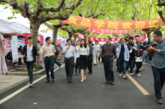 校领导一行分别到各个学院的新生报到处、体育馆、财务处等地,询问新生报到的进展情况。