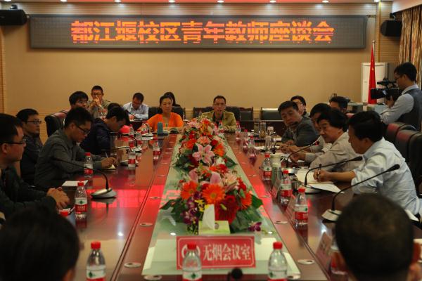 10月16日,都江堰校区组织召开青年教师座谈会和学生座谈会,参会的师生代表踊跃发言,就教学、科研、专业学科发展、个人发展等提出意见建议。郑有良对参会的一线教师表示崇高的敬意和衷心的感谢。他说,今年是本科教学质量年,学校把本科教学作为头等大事,本科专业要实现均衡式发展。目前,学校正处于转型升级的关键时期,校区布局调整、学科专业调整均已基本完成,要求各位青年教师要认真研读学校管理制度,确立好自己的发展方向,认真做好现有专业建设,同心同德、同心协力做好本职工作。学校会认真思考大家提出的问题,希望能为大家“搭好台、修好路、服好务”,祝福老师们能发展得越来越好,生活得越来越好。