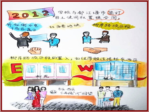 2012年,学校与都江堰市签订国有土地使用权置换合同,新置入外北街、红庙巷等地块,共计61.6亩,为校区建设发展拓展了空间。