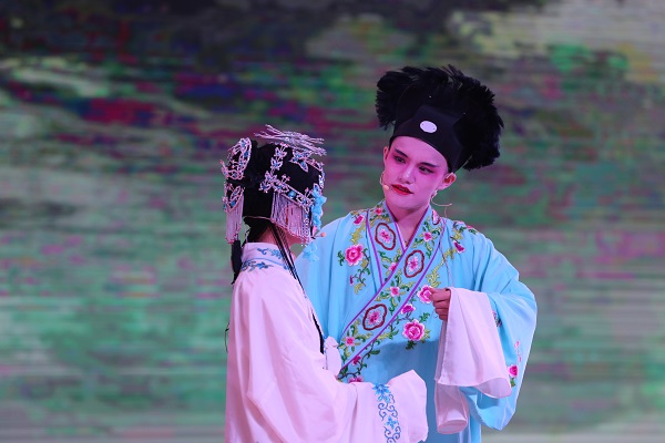 除了微信互动环节,本次晚会还增加了留学生表演、师生同台、英文主持等特色内容。留学生组合带来的歌曲《朋友》触动心灵,让人陷入回忆;师生合唱《红梅赞》中校团委李莹老师慷慨激昂的演唱将江姐崇高的民族气息展现得淋漓尽致。此外,戏曲联唱《梨园芳华》集合多个传统剧目选段,鲜明的民族风格和悠长的历史韵味更是让人眼前一亮。