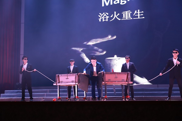 一绸带一香扇,在舞者一颦一笑的一展一旋中,演出将观众带入朦胧薄雾的《风酥雨忆》中,一首轻快的阿卡贝拉《情非得已》让大家在跳跃的音符中感受青春校园的魅力,精彩绝伦的武术表演《天下武双》引得同学们欢呼阵阵。伴着激情奔放的节奏,动感的舞者迈着挥洒自如的舞步,为大家带来了活力十足的《街舞串烧》。民俗器乐演奏的《沧海一声笑》,伴着代表新生力量的中国新说唱,令人忆往昔峥嵘岁月,叹天地悠悠之悲怆,尽感潇洒之气魄。变幻莫测的魔术表演《浴火重生》,从无到有,从有到无,不可预测,引得现场同学惊呼“这是怎么来的。”何长江老师携学生以情入《红梅赞》之歌中,婉转空灵的歌声,配上婀娜多姿的舞蹈,将傲雪红梅之景展现得淋漓尽致。《Five Hundred Miles》《My Heart Will Go On》,与钢琴、小提琴、吉他等乐器相伴,在感概离家求学寄乡愁的同时,表现出00后们无畏向前的决心。古有望明月寄愁思,今有《寄明月》的白衣红裙与折扇惊艳了众人。随着《Young Time》变换着的一首首配乐,礼服秀、制服秀等礼仪走秀在光彩夺目的灯光下尽展中华礼仪之邦的仪态。