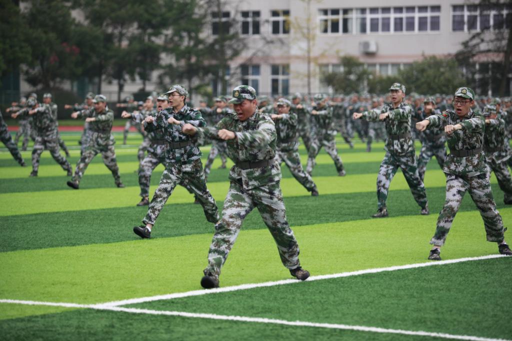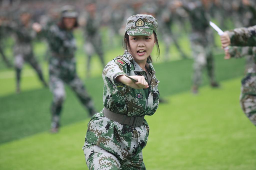 在庄严的升国旗和迎军旗仪式后,分列式与汇报表演正式开始。军训各方队学员精神振奋、步伐整齐、口号嘹亮,依次走过主席台前。他们用威武军姿展现了当代大学生朝气蓬勃的昂扬精神,用训练场上的“高负荷”换来了阅兵场上的“高颜值”。分列式结束后,参训官兵和同学带来的匕首操、舞红旗、擒敌术等表演更是精彩纷呈,赢得阵阵喝彩。