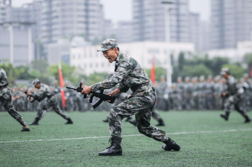 三校区承训部队负责人分别作了军训总结致辞,他们充分肯定了军训成果,希望同学们不忘初心,将军训成果运用到今后的学习生活中,继续发扬团结拼搏的精神,不畏艰难困苦,把军训中锤炼出的精神品格和优良作风,转化成人生前进的动力,创造更优秀的成绩。