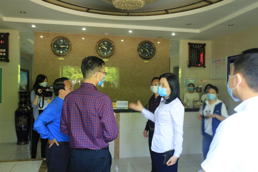 庄天慧还查看了学生食堂、教室、学生宿舍、图书馆和防疫物资准备情况。