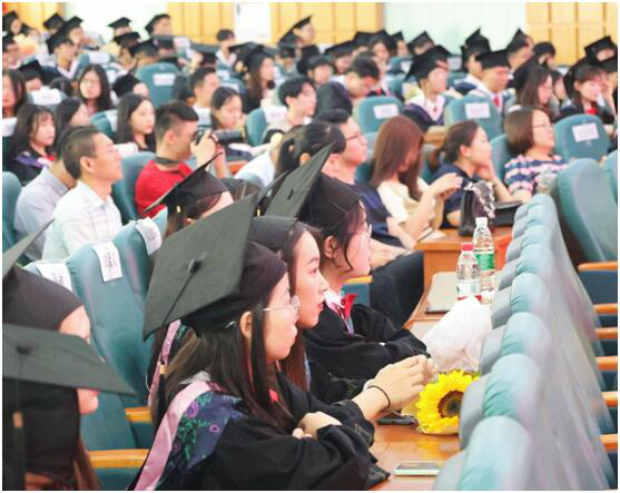 各学院领导、教师代表、毕业生代表上台发言,一句句表达中有对四年大学时光的回顾,有对临行学子的不舍和祝福,也有继续奋发有为、应对未来的挑战的殷殷叮嘱。