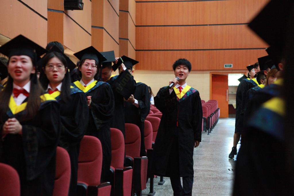 庄严的国歌声拉开了毕业典礼序幕。