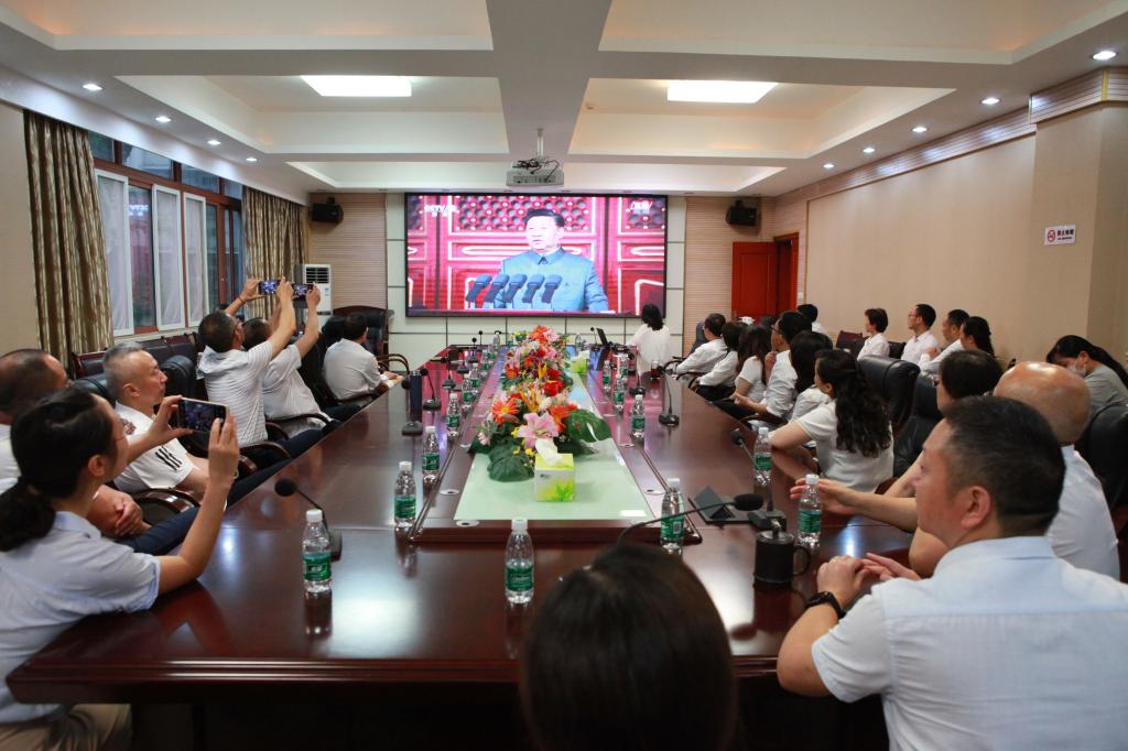 这是我校集中收看庆祝中国共产党成立100周年大会的一个点。建党节当天,学校超过4000名师生分为46个收看点,在三校区会议室、报告厅、图书馆、办公室、多功能教室等处,通过网络、电视等形式收看庆祝中国共产党成立100周年大会实况,聆听习近平总书记的重要的讲话。