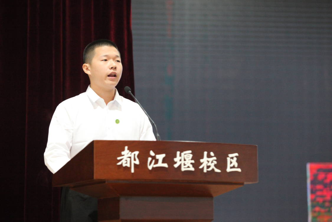 本科生新生代表、来自辽宁大连的土木工程学院土木工程专业2023级5班的麦家铭分享了自己以第一志愿考入川农的经历,表示一定坚定自我,对摆烂、躺平说不,争做不负韶华的实干家、善于创新的追梦人、持之以恒的川农人,用青春和汗水奋力书写强国建设的川农青春答卷!