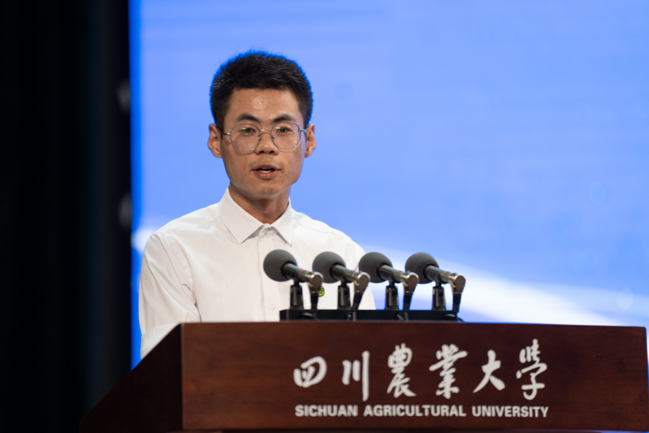 研究生新生代表、生命科学学院生物化学与分子生物学专业2023级硕士研究生欧阳宇峻发言,表示将明确目标、学会学习,博采众长、厚积薄发,志存高远、知行合一,将牢记总书记嘱托,厚植爱农情怀,练就兴农本领,在乡村振兴的大舞台上建功立业,积极贡献新一代川农人的青春力量。