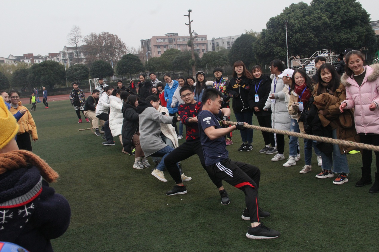当拔河比赛的哨声响起,参赛的队员们便紧握长绳往后拉。未参赛的同学自发组成拉拉队,为比赛队员呐喊加油,将活动氛围推向高潮。爱心铸就佳绩,友情诠释比赛的真谛,场上场下互动交流频繁,营造了轻松愉悦的比赛气氛。“友谊第一,比赛第二”的宗旨贯穿了整场比赛,同学们的脸上洋溢着青春的笑脸。各项目在紧张而热烈的氛中有序的相继展开。