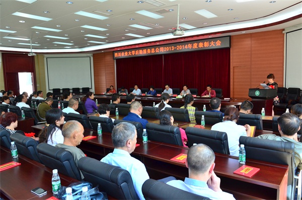 5月8日下午,后勤服务总公司2013-2014年度表彰大会在都江堰校区一教会议室举行,学校副校长兼校区党委书记王曙光、副厅级调研员何临春、都江堰校区副校长陈先林、后勤服务总公司总经理周文军、党总支书记伍宏、五级职员李权、副总经理杨本珍、陈文华出席会议,三校区后勤各部门负责人、先进集体和先进工作者代表以及员工代表共100余人参会。会议由伍宏主持。