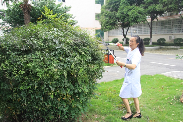 校区医院院长陈蓉参与绿篱修剪活动谈体会