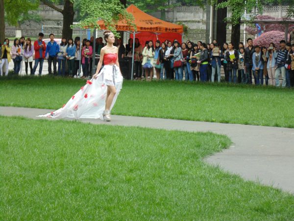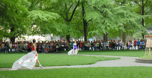 4月21日,在4.22世界地球日即将到来之际,由都江堰校区学生团体联合会主办,公关礼仪协会、环境保护协会共同承办的 “时尚呼唤环保”环保服装秀在校区银杏林举行,