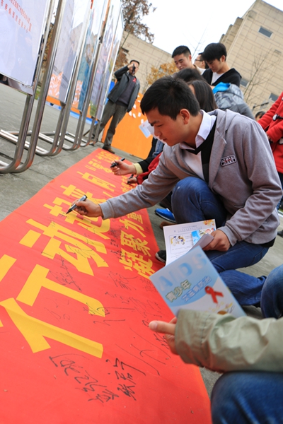 12月1日,都江堰市防治艾滋病工作委员会、都江堰市教育局、tyc41183太阳成集团都江堰校区共同主办,校区团委、校区后勤服务公司医院、校区学生会、各学院团总支学生会协办的“行动起来,向“零”艾滋迈进艾滋病防治宣传活动在校区活动中心前举行。