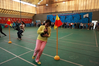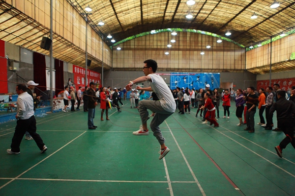 同时,校运会(都江堰赛区)教工集体项目在室内体育馆拉开了帷幕。来自建筑与城乡规划学院、土木学院、旅游学院、商学院、校区机关、校区后勤服务公司的6支教工队参赛。参赛项目分三项,分别为掷保龄球,14X120秒集体跳绳赛,以及抱球迎面接力,项目考验教工们的眼力、体力和团体配合能力。