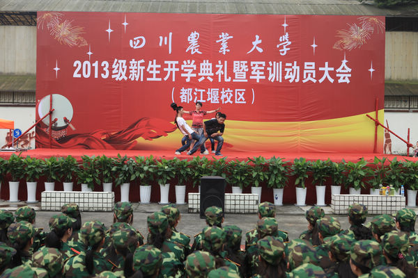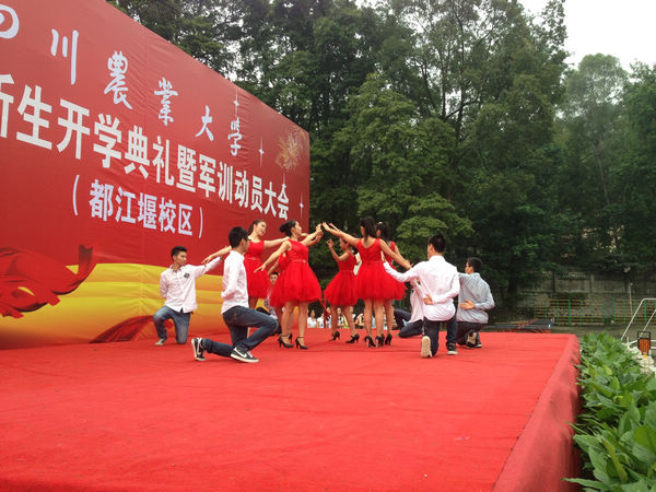 9月10日下午,都江堰校区团委组织大学生艺术团和学生团体联合会绿海艺术团等学生组织在运动场开展军训慰问演出活动。2013级新生以及全体教官观看了演出。