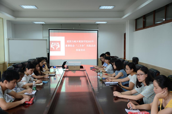 7月2日上午,建筑与城乡规划学院2015年暑期“三下乡”社会实践出征仪式在5409会议室举行。学院党委副书记郝锐、党委办公室全体老师及各团队负责人参加了本次活动。