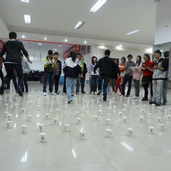 素质拓展活动分为小组进行,活动内容主要有“手舞足蹈”、“抢领地”、“衔杯传水”、“夺宝大行动”等游戏和“坐地起身”、“七彩连环炮”、“心心相印”、“地雷阵”等趣味运动会项目。活动中始终洋溢着青春的热情,弥漫着集体的荣誉感和团队合作的亲密感。