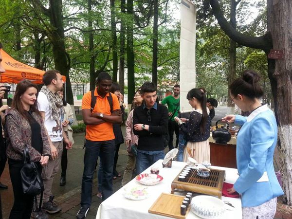 十余名学生干部陪同留学生参观校园,向他们介绍校区同学们的学习、生活。参观校区“盛世茶会”活动时,外国学生被精致的点心、娴熟的倒茶技艺吸引,他们对中国的茶文化赞不绝口。随后,中外学生一同游览了都江堰景区,留学生们感叹水利工程的宏伟之余也惊讶古人的智慧。交流会增进了彼此的友谊,开阔了学生的视野。