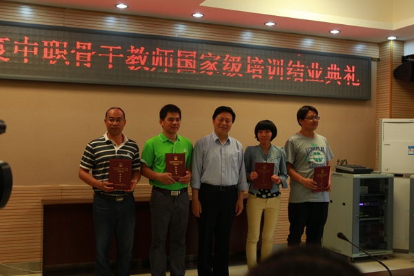 结业典礼上对培训作了简要总结,并颁发了结业证书。2013年度的国家培训任务共三个专业,其中都江堰校区包括计算机动漫与游戏制作、园林技术等两个专业,本期培训历时12周,参培学员全部结业,基地网络评教综合得分94.13,在全国已结束的67个基地中排名第11位,是继2009年基地开始网络评教以来基地最好的成绩。近年来,国培基地不断完善机构组织,落实基地管理、学院负责的运行机制,充分调动了学院的积极性。本期培训中,学院继续推行培训需求评估,根据学员需求和培训实际,动态调整培训结构、课程重点,开设了插花、园林常见植物识别、动漫及游戏制作数据采样等特色课程。学院还通过QQ群、班主任、授课教师等多渠道加强沟通交流,得到了学员的充分认可。