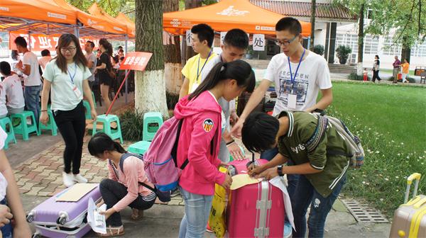 “去年,我来报道的时候,作为一个山东人,来到四川这边有种背井离乡的茫然,是迎接我的兰枫师兄让我感受到了家的感觉,我希望今天也能把这种感觉带给我的学弟学妹。”产品设计一班的邹为磊同学是此次迎新工作者中的一员,同其他同学一样,开学前几日起就在为迎新生做准备。搭帐篷、写卡片、开会、画宣传展板等等,虽然工作繁多,但为了学弟学妹们能尽快得融入学校、感受到学校的温暖,他们乐此不疲。