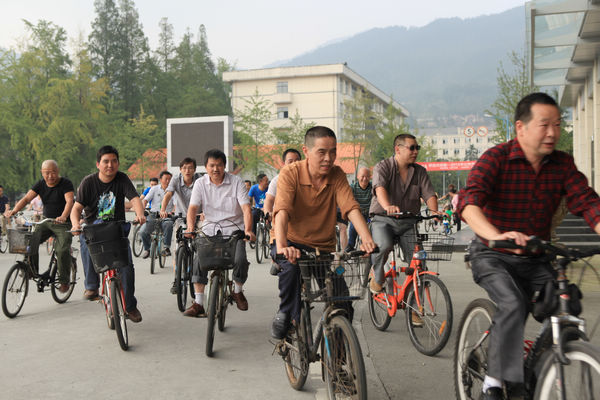 为庆祝第29个教师节以及倡导绿色出行,低碳生活,9月12日下午,都江堰校区工会办公室组织教职工骑游骑游活动。100余名教职工参加了活动。