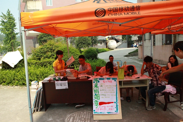 在毕业生住宿相对集中的学生公寓楼下,分别设立了“毕业捐赠处”。不少毕业生抱来书籍、画板、电脑桌、水壶等用品,向学弟学妹们传递一份爱心。