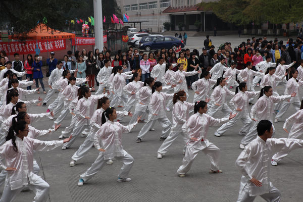 开幕式结束后,进行了蕴含中国传统体育文化精髓的太极拳表演、健康活力的大众健身操、团结协作的集体跳绳和百米接力等活动。身着太极服的同学们在古典的音乐声中动作连贯,刚柔并济,体现了新时代的体育人文精神;大众健身操充满青春活力,同学们在强烈的节奏中感受体育的激情,享受体育的快乐;集体跳绳和百米接力展现了各学院学生齐心协力为集体荣誉而努力拼搏,场上场下气氛热烈,呐喊声、加油声响彻整个校园。