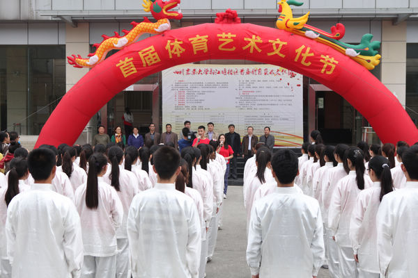 10月25日下午,由都江堰校区主办、商学院承办的首届体育艺术文化节开幕式在活动中心前举行。校区党委副书记李静波、商学院全体领导、城乡建设学院和旅游学院分管学生工作的领导、学工部相关负责人等出席了开幕式。