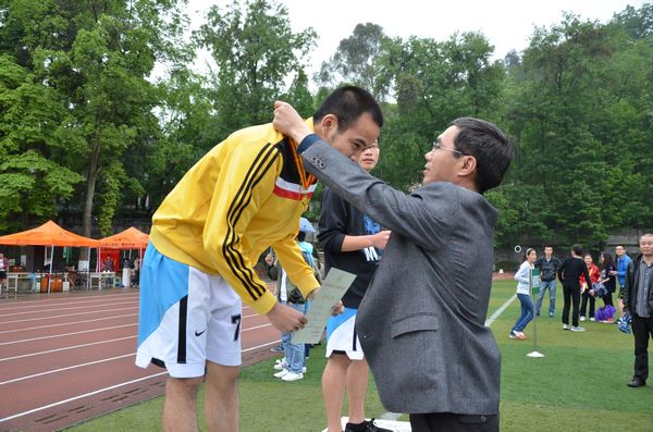 在领奖台上欧然露出灿烂自豪的笑容,尽显王者风范。鲜花与掌声的背后蕴藏着他在训练场上的刻苦与坚持不懈。在今年的校运动会之前的一个月,为了保持自己良好的运动状态,欧然几乎每天晚上都坚持到运动场跑步。梅花香自苦寒来,正是他有了这样艰苦的训练,才有了今天的成绩和辉煌。