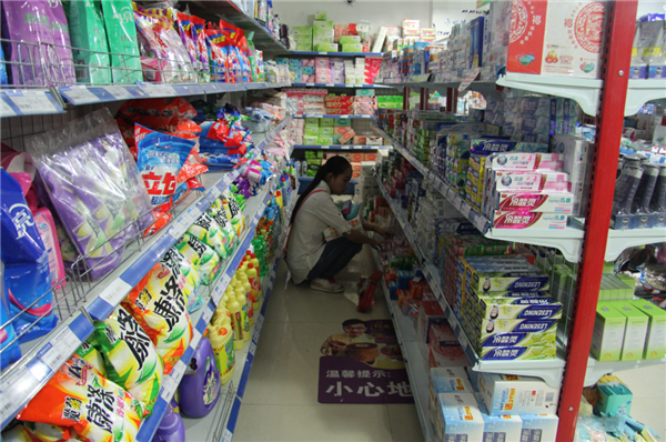 超市内,各货架上整齐有序的摆满了琳琅满目的商品,品种丰富、价格实惠、质量优质,为新生们提供急需的各类生活用具、日化商品,在日常用品选购现场水盆、洗发水、牙膏等生活用品样样俱全,新生足不出校就能购全所有在校生活用品。