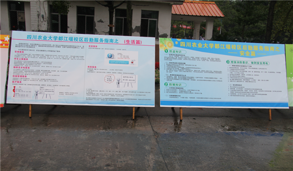 后勤迎新现场,两幅后勤服务指南之安全篇和生活篇的展板向新生及家长介绍了饮食、公寓、维修和水电以及医疗等后勤服务项目及负责人联系方式;家长休息区内增设饮水机,热水供应不断……宿管委员会、红十字小分队、伙管委员会等多名志愿者们忙碌在后勤各服务点,指引新生办理入住手续、分发床上用品、找寝室、收取体检表、维护秩序等,各项迎新后勤保障工作顺利有序进行,默默无闻的后勤迎新工作人员和志愿者们各就各位,奏响了迎新服务“进行曲”。