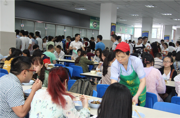 考虑到新生报到餐饮需求量大和集中的实际情况,食堂提前增加采购量,适量增加菜式的花色品种和数量并延长供应时间,从而确保每一位到校的新生和家长随时能吃上热腾腾的饭菜。在紧张的供餐中还负责为各接待点运送盒饭。