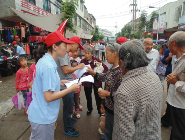 29日是长兴镇的赶集日,队员们早上喊着口号,举着旗帜,在茶馆、社区、农贸市场等人群聚集地进行了游街宣传。主要内容包括化肥农药正确使用,灾难逃生技巧,安全用电用火常识,以及反邪教崇尚科学等方面。