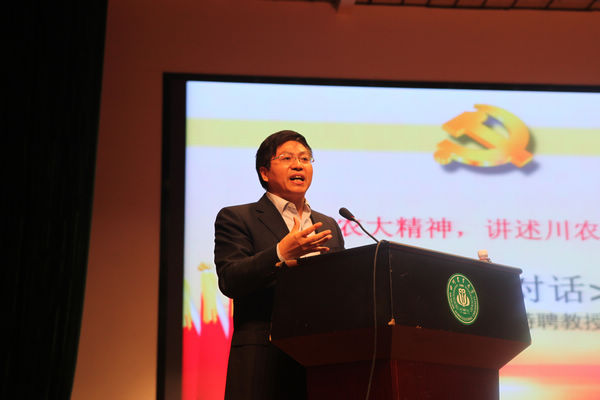 吴德教授用自己的成长经历告诫同学们,要多倾听大师的教诲,要树立目标,要管好自己、拒绝诱惑,要不断挑战自己,要静下心来,慢慢走,脚踏实地,一步一步实现自己的梦,共筑川农梦,共圆中国梦。