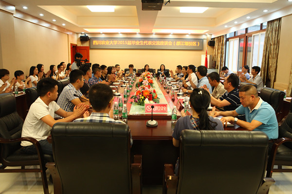 6月15日下午,都江堰校区2015届毕业生代表交流座谈会在综合楼会议室召开。都江堰校区校长李廷轩、校区党委副书记李静波、校关工委副主任陈建三、各学院领导、校区后勤服务公司负责人以及校区机关相关部门负责人与27名毕业生代表一同参加。座谈会由李静波主持。