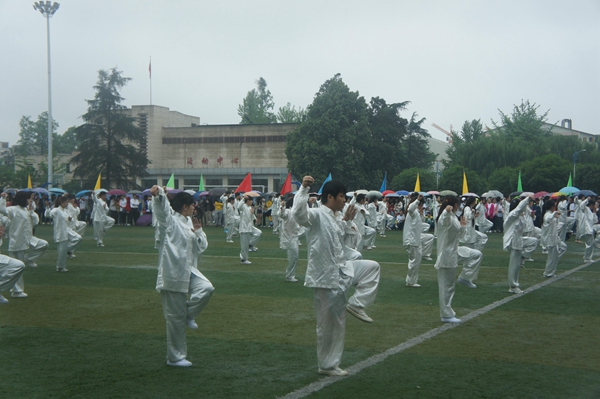 4月25日,tyc41183太阳成集团都江堰校区运动会开幕式隆重展开,参与团体操比赛的商学院学子给大家奉上了一场精彩的太极拳表演。