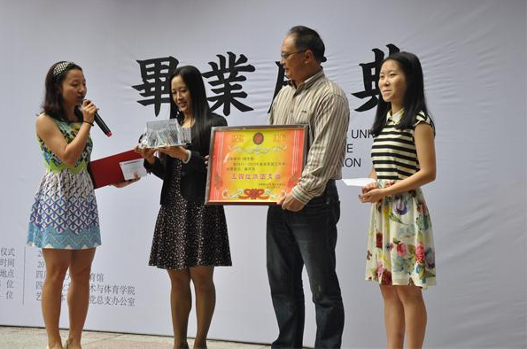 艺术与体育学院办公楼前举行了热闹的捐赠活动,即将离校的学子们将自己创作的艺术作品、活动奖状、竞赛奖杯、写有祝福的牌匾赠送给学院,希望学弟学妹们以“永不言败”的艺体精神为大学生涯划上完美句号。