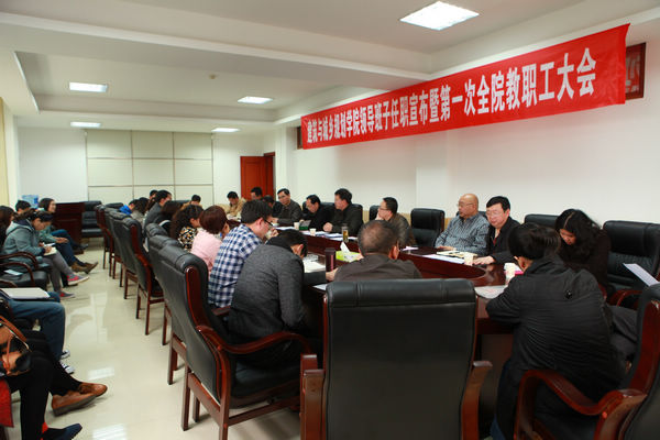 会上,秦自强宣读了学院机构调整及学院领导任命决定。他强调,学院机构调整是学校重要及战略布局的机遇,全院上下要深刻理解学院机构调整的重大意义。他说,新学院成立后,与全国具有同样学科的院校比较,基础相对薄弱、条件相对欠缺、差距相对较大,如何找到突破口,办出学院特色,让新生学院做大做强,需要全院教职工的大力支持,抓住发展机遇,使学院尽快发展壮大。他希望学院领导班子成员精诚团结,认真谋划学院的规划蓝图,千方百计为学院教职工谋福利;全院上下要以凝心聚力,开拓进取,奋发有为的精神状态,共同为学院发展努力奋斗;牢牢抓住以人为本、立德树人理念,为学生做好服务;全院教职工积极支持学院工作,创造性地做好本职工作。