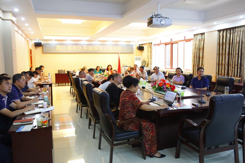 9月4日上午,都江堰校区在5304会议室召开新学期科级领导干部大会。学校副校长、都江堰校区党委书记朱庆,校区校长王刚,党委副书记陈中桂、副校长陈先林、何国柱,后勤服务公司经理陈文华及全体科级领导干部参会。会议由陈先林主持。