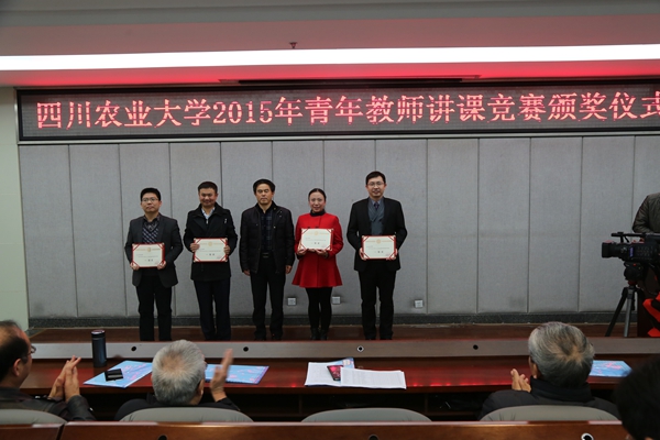 在颁奖仪式上,副校长杨文钰及教务处、校工会、人事处负责人为获奖老师颁奖,学生评审代表为“我最喜爱的青年教师”获得者颁奖。