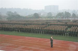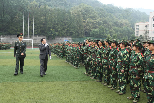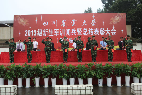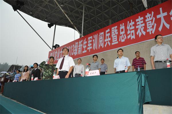9月17日上午,2013级新生军训阅兵暨总结表彰大会在三校区运动场隆重举行。党委书记邓良基、校长郑有良,党委副书记秦自强、庄天慧,副校长张强、朱庆、杨文钰、陈代文、王曙光,副厅级调研员何临春,党政职能部门和学院党政负责人,成都校区、都江堰校区负责人,以及全体参训官兵参加了大会。何临春、成都校区校长王刚、都江堰校区党委书记刘川分别主持三校区大会。