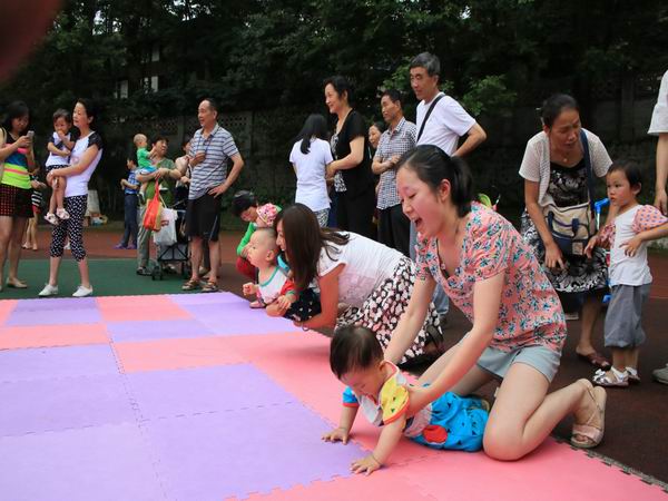 5月31日上午,来自雅安校区80余户家庭200余名教职工及其小孩在体育馆欢聚一堂,活动按照年龄段设置了人生爬为先、慈父大比拼、我坐大花轿、大脚车出发等8个趣味项目,以家庭为参赛基本单位,对每个项目前三名进行奖励,同时所有参与活动的小朋友都能领取参与奖品,整个体育馆充满了欢声笑语。