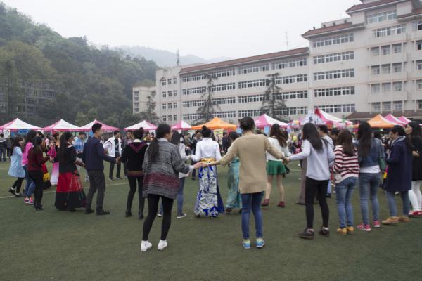 定时组织的五毛一块、团体过关赛、撕名牌等团体游戏,以及民族风走秀、民族舞蹈表演等,一次次将现场气氛推向高潮。活动一直持续到了下午五点,不少同学意犹未尽。