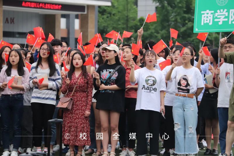 今年是五四运动100周年,新中国成立70周年。校区团委邀请建筑与城乡规划学院、土木工程学院、旅游学院、商学院和校区艺术团的学生代表共500余人参加该活动。在《保卫黄河》、《爱我中华》、《团结就是力量》、《我和我的祖国》、《我们都是追梦人》等十首爱国歌曲一首接一首的联唱中,同学们脸上贴着五星红旗的贴纸,手中挥动着五星红旗,跟着熟悉的旋律挥动小国旗,齐声高唱。上党课前,学校党委副书记张强和校区党委副书记陈中桂也闻声而来,和大家一起高歌《我的祖国》,团委的老师还现场跳起舞来,现场气氛异常热烈。歌唱的同学们笑容洋溢又目光坚定,歌声似火,唱出一颗颗炙热滚烫爱国心。