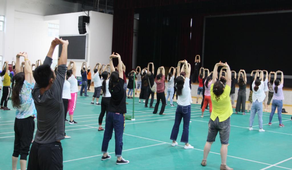 6月25日,都江堰校区后勤服务公司部门工会工间操健身活动之“健身气功八段锦”培训在校区体育馆举行,商学院体育教师李煦担任主讲,后勤服务公司两百余名职工参加活动。