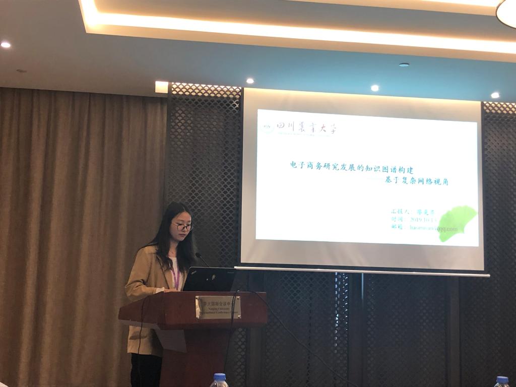 商院学子的3篇论文被本次大会录用。其中廖觅燕的论文《电子商务研究发展的知识图谱构建——基于复杂网络视角》采用文献计量学与数据挖掘的知识,基于电子商务领域的文献数据进行科学知识图谱构,并在大会上作了研究汇报发言;张婧的论文《基于调节定向理论的医疗众筹参与意愿研究---个人动机的视角》,以众筹中捐赠者个人心理视角对其参与捐赠意愿进行了研究,斯杨丽姿与杜唐翼的论文《电商扶贫的脱贫促进机制评价研究——基于西南地区4个国家级民族贫困县的调研》以四个民族贫困县为例,利用实地调研数据构建了电商扶贫量化指标体系,以海报形式对论文进行了分享。