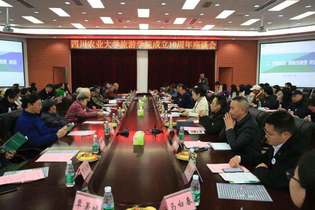 11月19日,旅游学院成立10周年座谈会在都江堰校区报告厅举行。在外开会的副校长陈代文教授亲笔撰写致辞对学院10周年华诞表示热烈祝贺,对10年来为学院建设和发展付出辛勤劳动、做出突出贡献和奉献的老师、校友、社会各界和学子表示感谢和慰问,希望全体师生坚守立德树人之初心,牢记强农兴旅之使命,为把学院办成有特色高水平、国内外知名的旅游学院不懈努力。